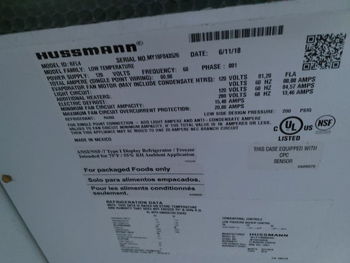 Hussman Cooler - 4 Doors (1) , Hussman Cooler - 2/3 Doors (1) - Load #222303